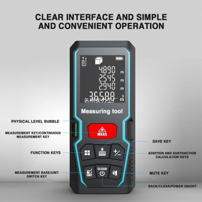 جهاز قياس المسافة بالليزر ميني ديجتال 80 متر يعمل بالبطارية